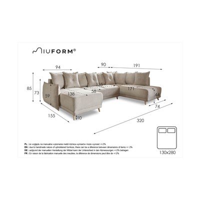 VelvetaSalokāms/ar uzglabāšanas vietuAr labo stūri/U veidaZaļšVairākvietīgsPlatums 320 cmDziļums 191 cmSēdekļa dziļums 58 cm