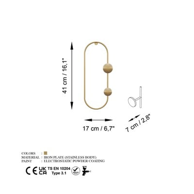 Ar plauktu, metāla, zelta krāsas, platums 17 cm, augstums 41 cm, dziļums 7 cm