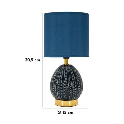 Ar auduma abažūru, keramikas, ar vadu, zila, augstums 30,5 cm