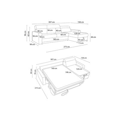 No šenila auduma, gulēšanai/regulējams/salokāms/ar uzglabāšanas vietu, ar labo stūri/ar kreiso stūri/ar maināmu stūri/ar zvilni, zils, četrvietīgs, platums 307 cm