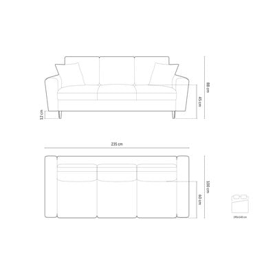 Samta, salokāms/ar uzglabāšanas vietu, zils, trīsvietīgs, platums 235 cm